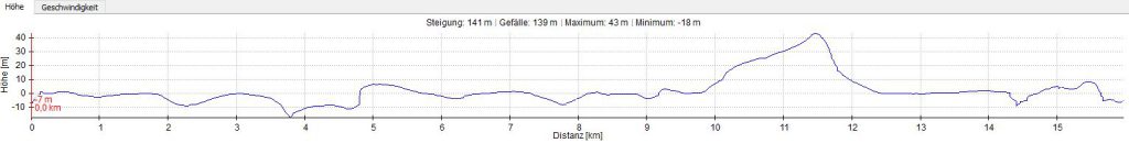 Höhendifferenz – 141 hm Anstieg, -139 hm Abstieg